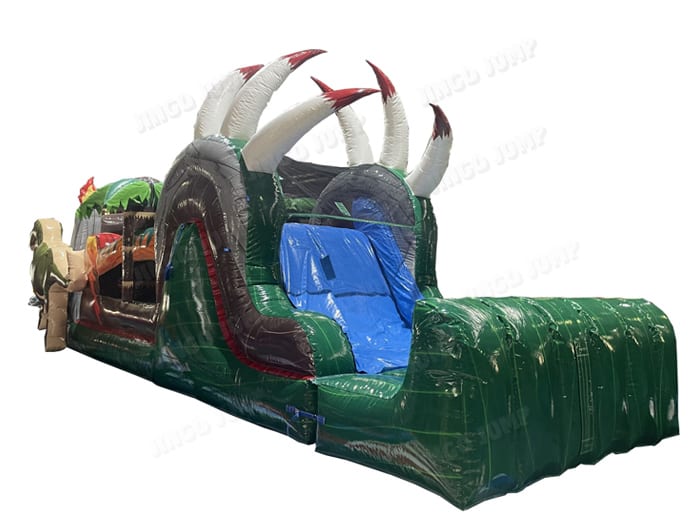 Perfect for birthday parties, corporate events, school carnivals, or any occasion where you want to add some prehistoric fun, our T-Rex obstacle course is sure to be a hit with guests of all ages. With vibrant colors, detailed designs, and high-quality construction, this inflatable obstacle course will create a memorable experience for all who dare to take on the challenge.