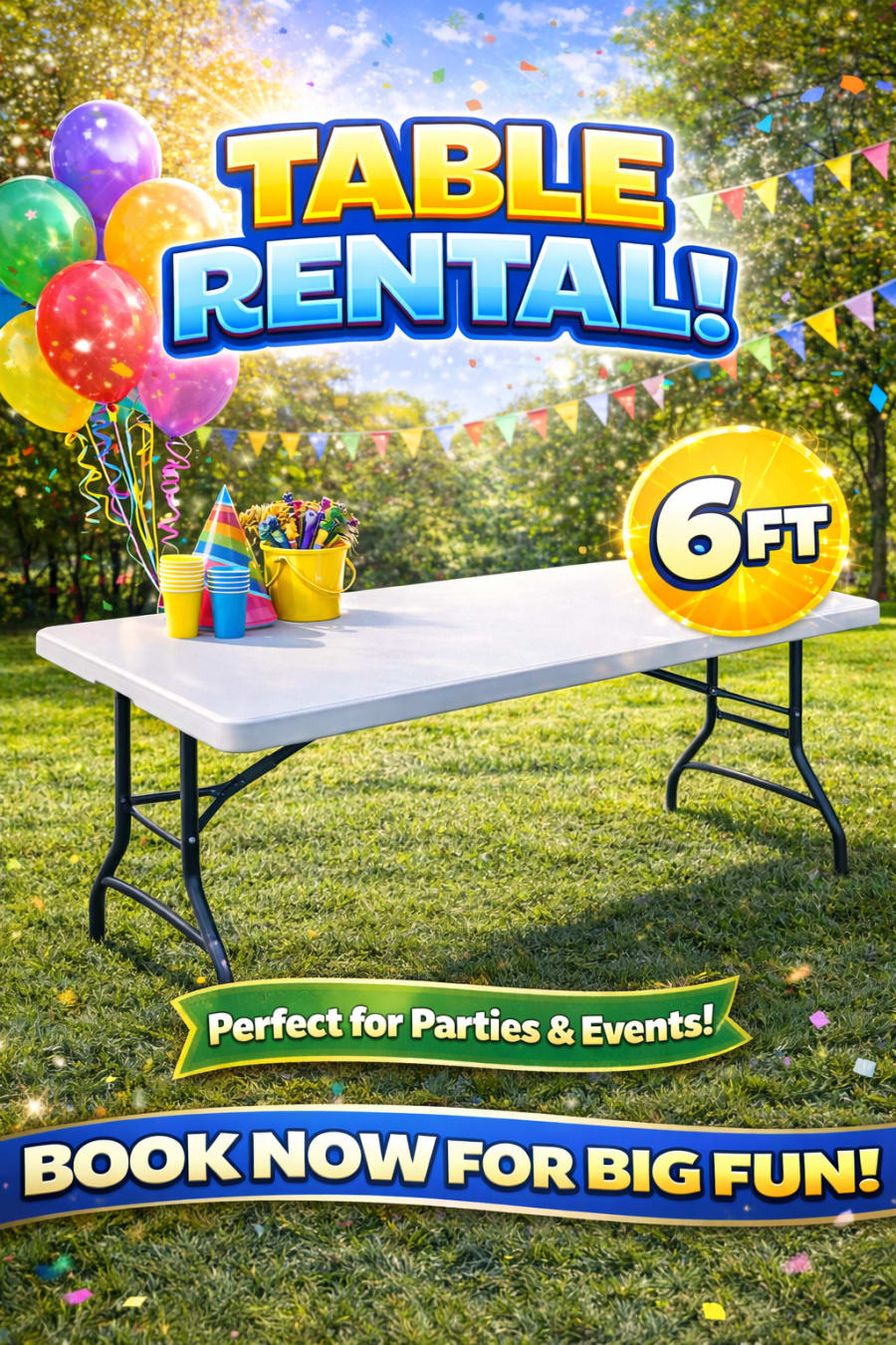 Need extra space for your event? Our 6FT foldable white tables are the perfect solution! Clean, sturdy, and easy to set up, they’re ideal for everything from food stations to gift tables and seating.