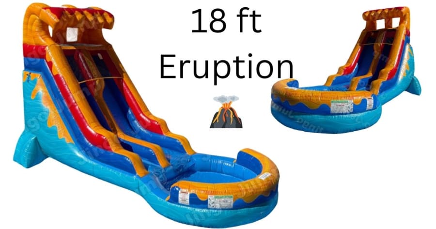 Turn up the heat at your next party with the 18ft Eruption Waterslide! 🌋💦 This towering slide brings explosive fun with its bold design, fast drop, and refreshing splash landing that keeps everyone coming back for more.